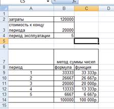 Затраты на приобретение оборудования составили 120000 руб., стоимость оборудования к концу периода эксплуатации 20000 руб., период эксплуатации 5 лет. Рассчитать амортизационные отчисления методом суммы чисел.