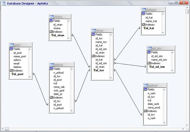 Рисунок 3 - Взаимосвязь таблиц базы данных
