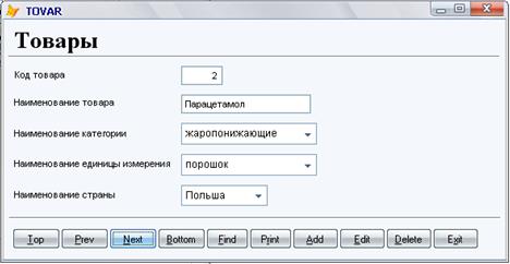 Форма, отображающая данные о товаре представлена на рисунке 11.
