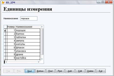 Форма, отображающая данные о единице измерения представлена на рисунке 14.