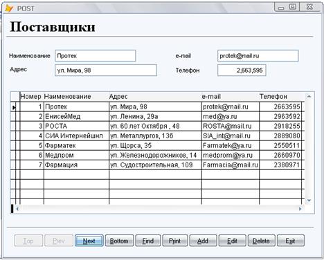 Форма, отображающая данные о поставщике представлена на рисунке 15.