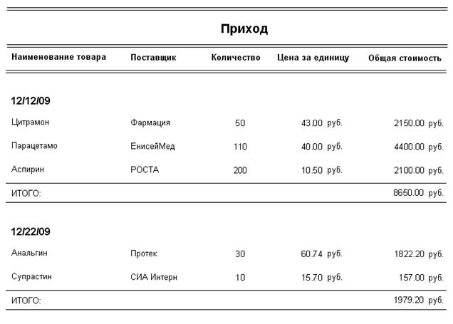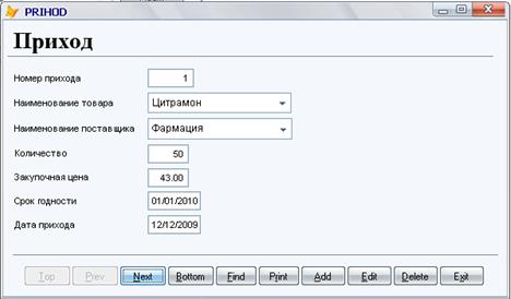 Форма, отображающая данные о приходе представлена на рисунке 16.