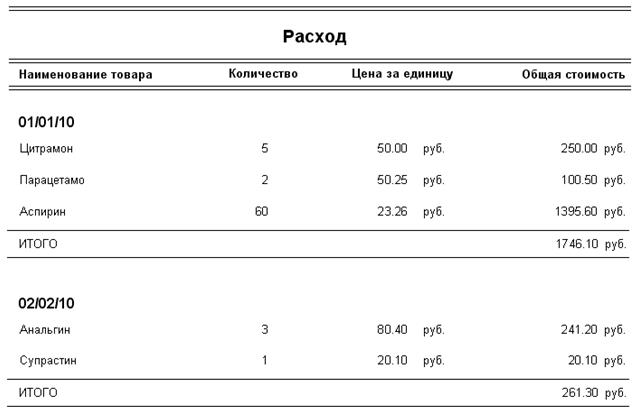 Форма, отображающая данные о расходе представлена на рисунке 17.