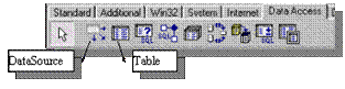 DataSource (первый слева) - связывает компоненты отображения информации с компонентом Table (первый компонент).