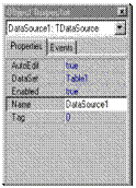 Служебная компонента DataSource выполняет роль связующего звена и имеет следующие свойства: