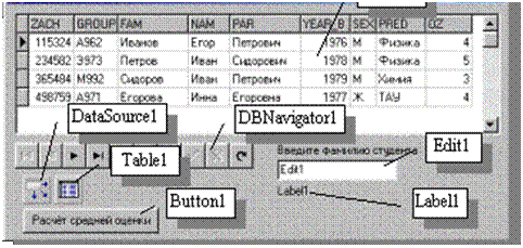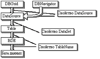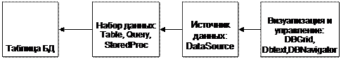 Рис. 6 Схема взаимодействия компонентов Delphi с БД.