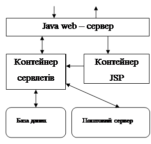 На появу такої технології вплинуло також масовий вихід різноманітних редакторів, які спрощували написання статичних HTML-сторінок. Стало достатньо просто розробляти красиві за інтерфейсом та динамічні веб-додатки. Користувачі за допомогою будь-якого редактора створювали красиву HTML-сторінку, а потім поміщували всередині неї Java-код для забезпечення більшої інтерактивності сторінки. Схема функціонування Web-сервера з сервлетами та JSP-сторінками зображена на Рис.1.2.