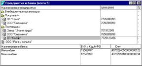 Получите краткий список предприятий и банков (нажмите Ctrl+P в каталоге предприятий).