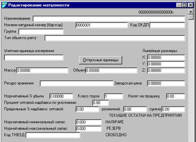 3. Поле "Объем " - такое же поле есть и в каталоге МЦ, но фактически это ярлык, который нигде не используется и никак не контролируется.Может быть также задана для матценностей. Используется для получения информации о свободном объеме склада.