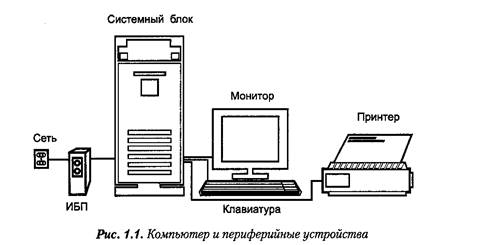 Внешние устройства. Многие устройства располагаются вне системного блока компьютера и подсоединяются к нему через специальные гнезда компьютера, обычно находящиеся на задней стенке системного блока. Кроме монитора и клавиатуру внешними устройствами являются :