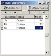Если вы хотите изменить данные о парке машин вам необходимо перейти в меню файл выбрать пункт меню парк автобусов. После этого вам откроется окно с данными о автобусах. После редактирования записи ее можно восстановить нажав на кнопку отменить изменения. Замечание (Если вы изменили запись и открыли другое окно изменения автоматически подтверждаются)