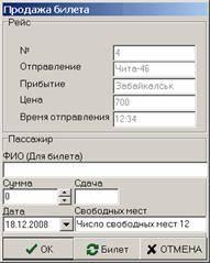 После чего откроется окно продажи билетов. Перед тем как прадать билет, вы должны ввести сумму платежа и выбрать дату рейса, время рейса автоматический вставляется исходя из значения, выбранного на предыдущем этапе. Выбрав дату, в поле отображается количество свободных мест в транспорте.