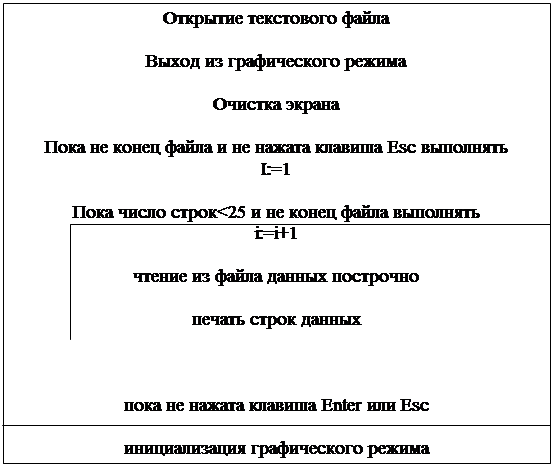 Перед тем, как осуществлять печать данных из файла, происходит выход из графического режима и очистка экрана. Затем