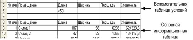 будет автоматически занесен диапазон ячеек, занимаемых исходной таблицей. Для занесения диапазона ячеек, занимаемых вспомогательной таблицей, в поле Диапазон условий