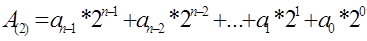 Эквивалент некоторого целого n-значного двоичного числа вычисляется согласно формуле: