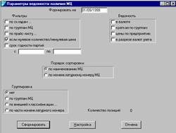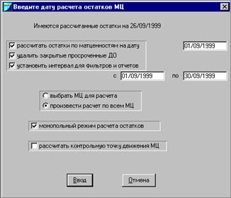 | Складской учет Þ =А= Þ Работа с остатками МЦ Þ Рассчитать остатки МЦ на дату |