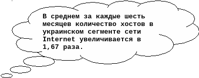 Постоянно прибегать к услугам Internet автор эти строк начал с середины 1995 года, однако систематически изучать особенности развития Internet — только с начала 1997 года. Так вот, на начало 1997 года в Украине было около 250 Web-серверов. В основном это были действительно Web-серверы. Предоставление клиентам возможности размещения их информации на Web-серверах компаний-провайдеров (так называемый хостинг - hosting) еще широко не практиковалось в тот момент в Украине. В середине 1997 года количество Web-серверов возросло до 750. Но это уже были не только «честные» Web-серверы. Значительное количество из них составляли так называемые виртуальные Web-серверы, когда на одном и том же хосте размещается как сервер хозяина хоста, так и сервера клиентов.