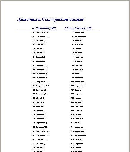 Рисунок 3. Отчет: Детективы Поиск родственников