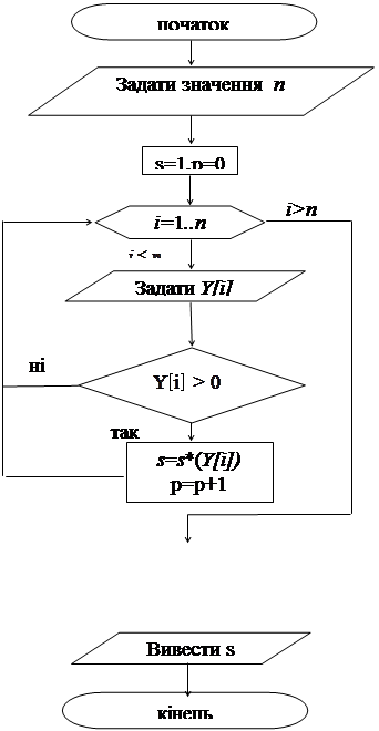 Постановка задачі: Обчислити середнє геометричне елементів масиву Y , які задовольняють умові yi >0 .