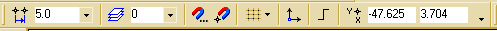 4 – Панель текущего состояния. Здесь расположены окна, отображающие шаг курсора, номер текущего слоя, кнопки управления привязками, координаты курсора и др. (рис.4).