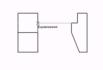 Установите начальную точку прямоугольника используя привязку Выравнивание (рис. 9) (выравнивание выполняйте по крайней нижней точке уже начерченного вида).