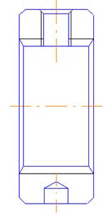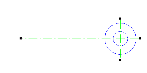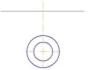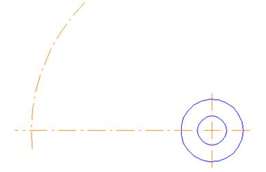 Создайте окружность радиусом 14 мм, при этом в Строке параметров объекта укажите "С осями". Появится окружность вместе с осевыми линиями.