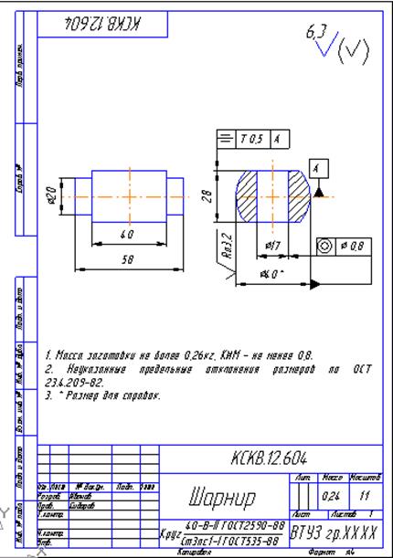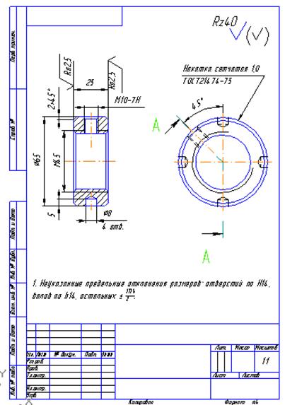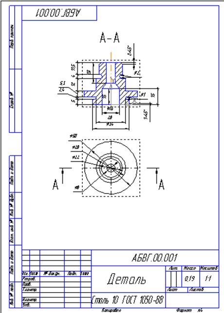 - Чертеж – лист чертежа, состоящий из видов деталей и соответствующих элементов оформления (технических требований, знака шероховатости неуказанных поверхностей, основной надписи). Тип создаваемого файла: *.cdw;