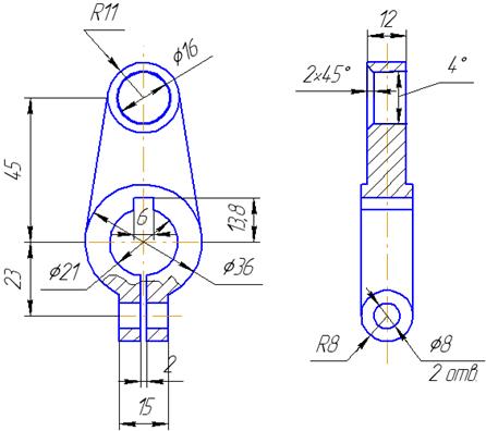 Цель работы: изучить следующие приемы работы в системе Компас-3D V6: построение сопряжений; использование панели расширенных команд; копирование объектов; простановка угловых, радиальных и диаметральных размеров; создание линии-выноски; изменение типа линий.