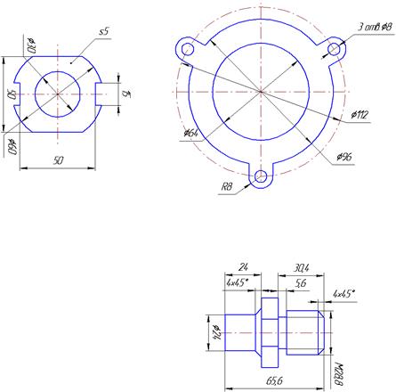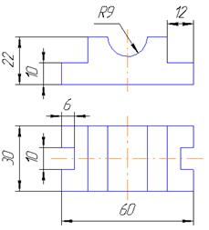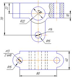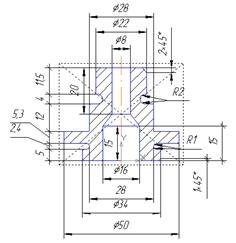 Создайте новый документ "Деталь". В соответствии с чертежом на рис.1 создайте 3D модель верхней детали (рис.2). Сохраните документ как "Деталь 1".