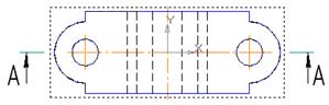 При помощи команды Линия разреза на Инструментальной панели Обозначения укажите положение секущей плоскости (А-А) на уже созданном виде Сверху для создания разреза (рис.64).