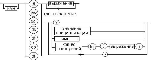 Машинного эквивалента этим директивам нет; просто транслятор, обрабатывая каждую такую директиву, выделяет необходимое количество байт памяти и при необходимости инициализирует эту область некоторым значением .