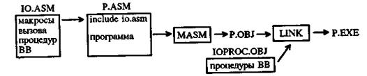 Часть операций ввода-вывода реализована в виде процедур, описания которых собраны в отдельном модуле, хранящемся в файле с именем ioproc . asm (текст модуля приведён ниже). Предполагается, что этот модуль заранее оттранслирован и в виде объектного модуля записан в файл с именем ioproc . obj .