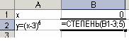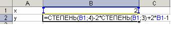 Введем в ячейку В1 предполагаемое значение х , а в ячейку В2 формулу вычисления у.