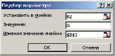 - для сохранения найденного значения нажать кнопку ОК. Для восстановления значения, которое было в ячейке с параметром до использования команды Подбор параметра нажать кнопку Отмена.