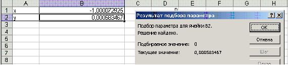 - нажать кнопку ОК или клавишу Enter, на экране появится окно диалога Результат подбора параметра;