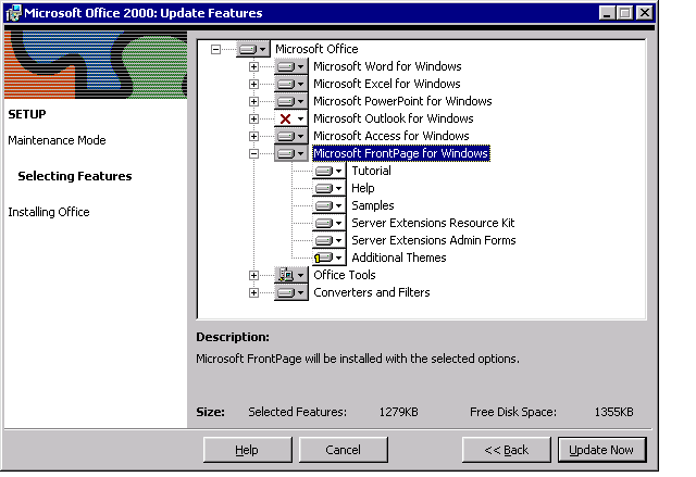 FrontPage 2000 прост в обслуживании и эксплуатации. В нем используется та же программа установки, что и в приложениях Microsoft Office. Эта программа позволяет производить установку по требованию, запускать приложения с сервера и восстанавливать программное обеспечение.