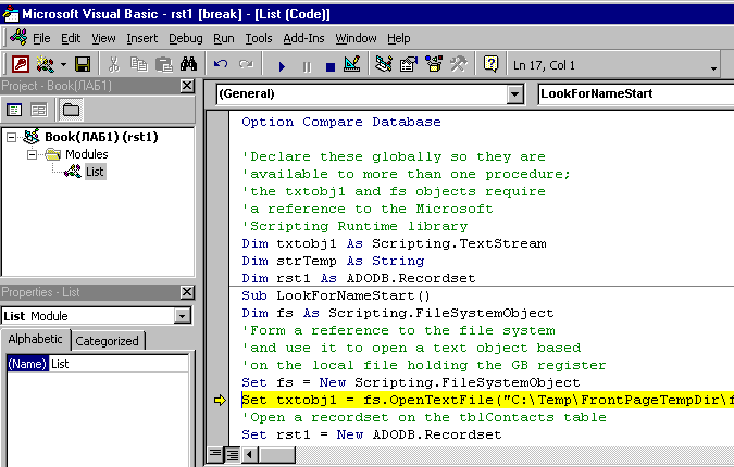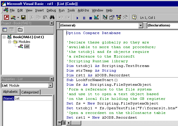 Моя задача состояла в том, чтобы в приложении FrontPage создать гостевую книгу. Затем в приложении Access создать однотабличную базу данных и в модуле Visual Basic набрать и отладить код программ, которые бы считывали данные из гостевой книги в базу данных.