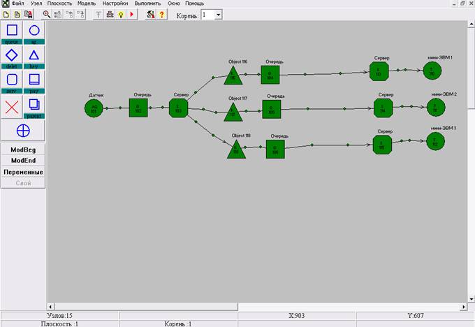 3. Построение графа модели с помощью конструктора (вообще говоря, можно сразу писать программный файл, но конструктор значительно облегчает работу).