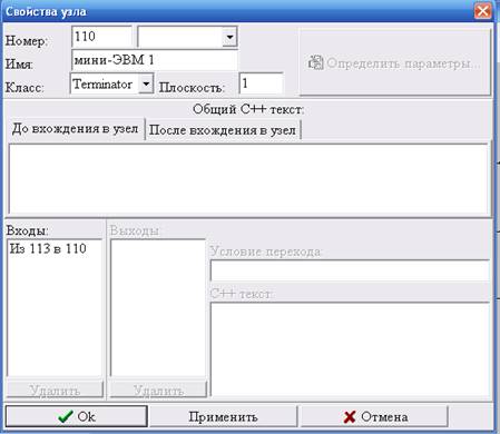 Для описания терминаторов необходимо задать только логическое имя узла. Никаких дополнительных действий в данной модели с ними не связано, в соответствии с рисунком 9.
