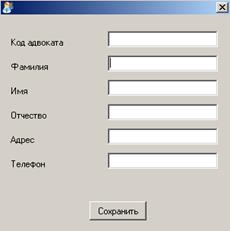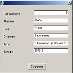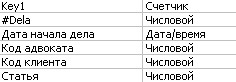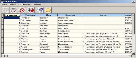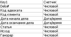 Таблицы "Адвокаты" и "Клиенты" заполняются непосредственно в MSAccess, так как данные в этих таблицах не должны быть доступны для служащих юридической конторы.