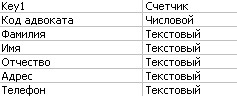 Таблица 1 - Структура таблицы "Адвокаты"