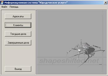 Рисунок 8 - Интерфейс информационной системы "Юридические услуги" при запуске