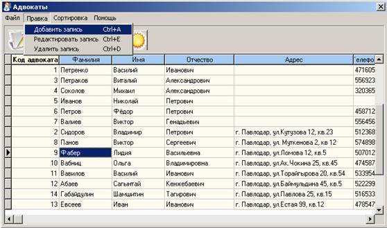 Для добавления записей данной таблицы выберите в меню выберите пункт правка добавить запись или нажмите кнопку на панели инструментов