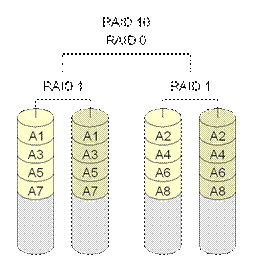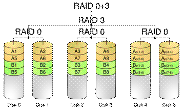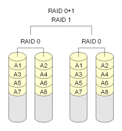 Поскольку массивы RAID являются прозрачными для ОС, то вскоре пришло время и созданию массивов, элементами которых являются не диски, а массивы других уровней. Обычно они пишутся через плюс. Первая цифра означает то, массивы какого уровня входят в качестве элементов, а вторая цифра – то, какую организацию имеет верхний уровень, который объединяет элементы.