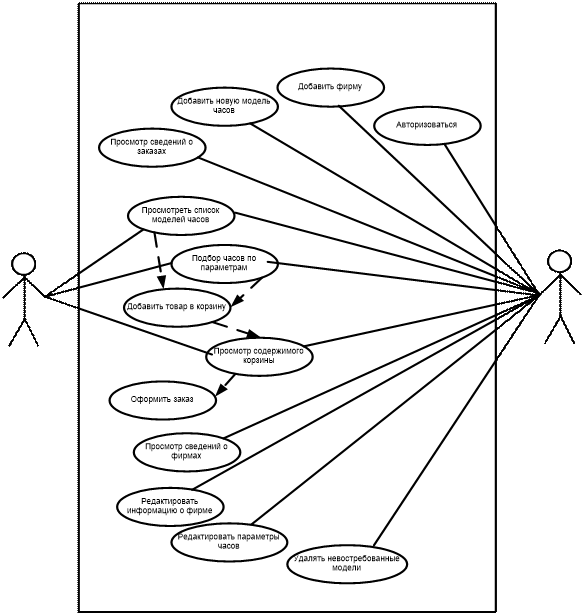 | АДМИНИСТРАТОР | Удаление невостребованных моделей часов из базы | Администратор удаляет фирмы и модели часов, которые по каким-либо причинам стали ненужными. |