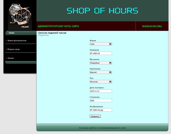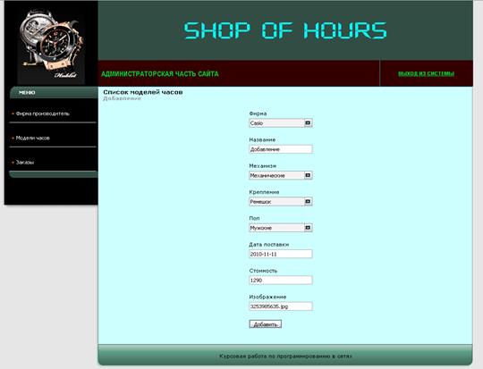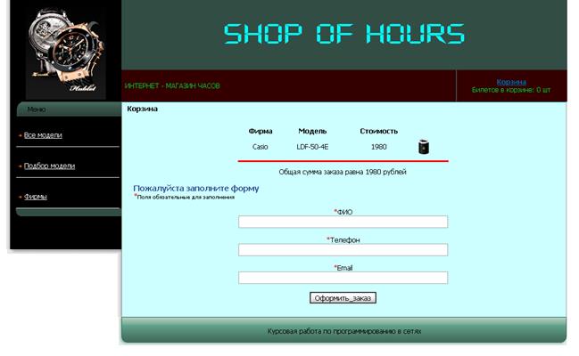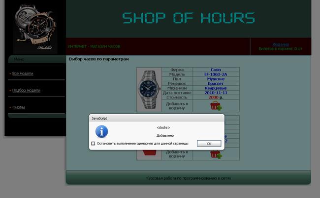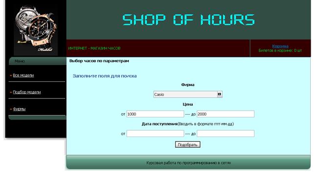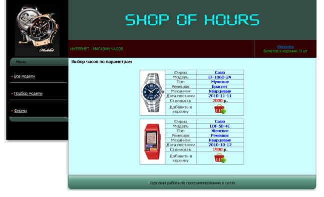 В рамках данного курсового проекта разработано Web-приложение «Интернет-магазин часов».