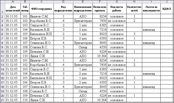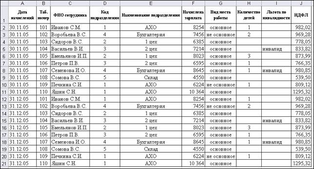 Наименование экономической задачи: на предприятии бухгалтерия осуществляет деятельность, связанную с ведением журнала расчета подоходного налога с зарплат сотрудников в разрезе подразделений.