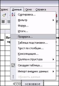 3. На панели инструментов выберем «Данные», затем «Проверка» (Рис. 6)