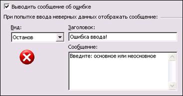 5. Перейдем ко вкладке «Сообщение об ошибке».