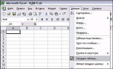 2. На панели инструментов выберем меню «Данные» затем «Сводная таблица» (Рис. 9).